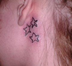 Moças comportadas pedem tatuagens singelas e delicadas como as famosas estrelinhas atrás da orelha: CLIQUE AQUI para ver mais sugestões de tatuagem para toda família! – – – Ela Tá De Xico!